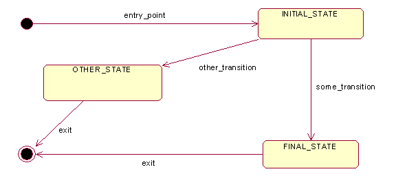 State modeling has been in use for many years, especially in “real time” software (and hardware!) development. Engineers use them all the time. Indeed, it is difficult to imagine an engineering course that does not include coverage of their use. State models are also known as state transition diagrams. They are used to model finite state machines, where a system (or subsystem) is known to be in only one state at a time. Further, the subsystem (in this case, a program module) can move from one state to another ONLY by means of a small number of legal state transitions. This lends to the reliability, robustness and provability of a system. Like Use Cases, State Models are fully incorporated into UDP. A sample state diagram is depicted below.